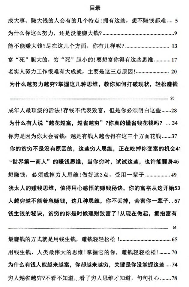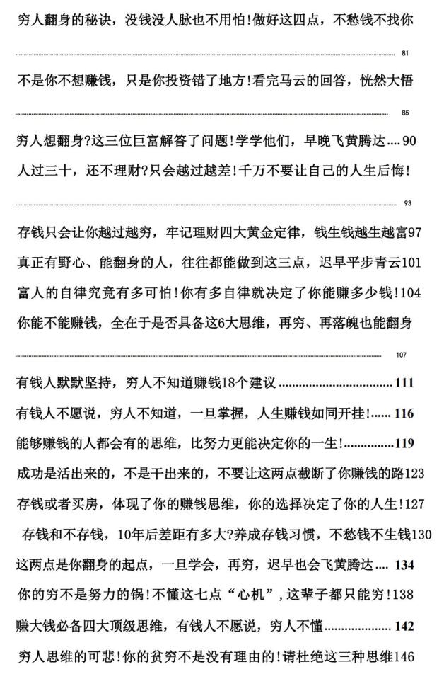 《财商革命》PDF 2025-10-01 创业赚钱 《财商革命》——揭开财富自由的终极密码! 为什么越努力越穷?富人如何用钱生钱?这本书颠覆你的金钱认知,揭秘犹太人、马云的致富逻辑。 从胆识培养到投资心法,从打破穷人思维到建立富人习惯——掌握这些思维,你也能让财富自动增长! 穷人与富人的差距,从来不是努力程度,而是思维方式! 资源下载下载价格10 爱坤币VIP免费升级VIP立即购买获取电子书 请添加微信:pc16616 获取电子书 请添加微信:pc16616 获取电子书 请添加微信:pc16616