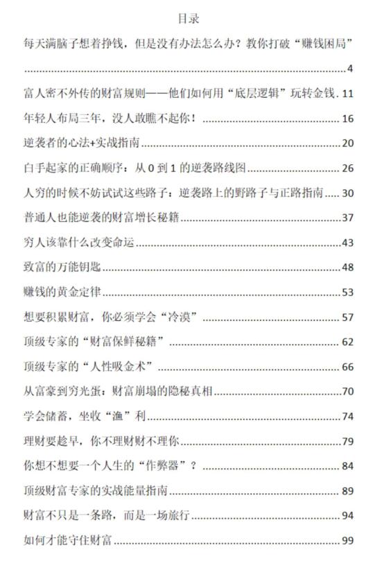 《逆袭赚钱心法》PDF 2025-10-04 创业赚钱 《逆袭赚钱心法》以前总觉得赚钱靠运气,后来才懂:把不起眼的小事做到极致,就是逆袭的开始。 别等风口,先练内功——别人嫌麻烦的细节,是你突围的武器;别人熬不住的坚持,是你复利的本金。 钱的背后,是你解决问题的能力,和扛住委屈的底气。 资源下载下载价格10 爱坤币VIP免费升级VIP立即购买获取电子书 请添加微信:pc16616 获取电子书 请添加微信:pc16616 获取电子书 请添加微信:pc16616