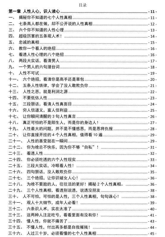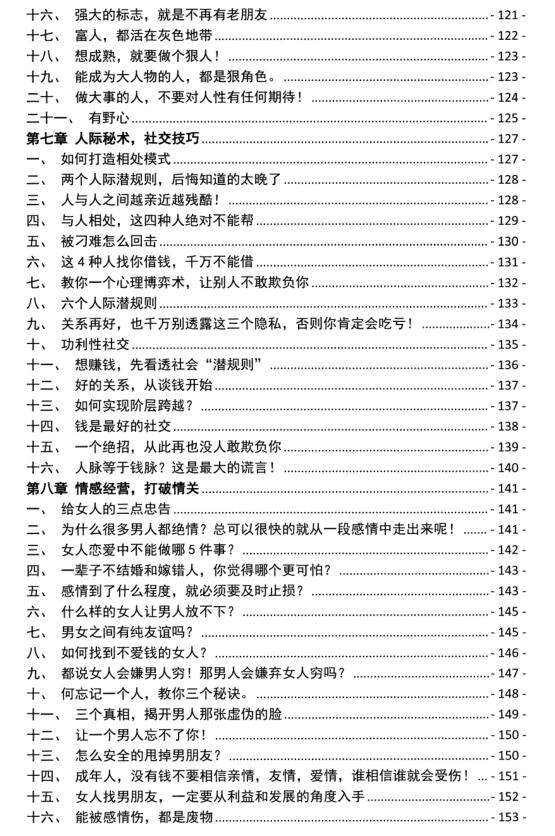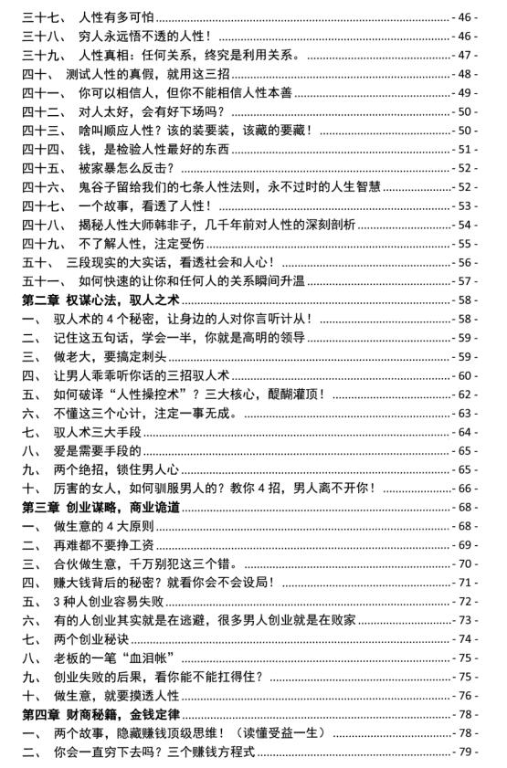 《人性权谋心法》学生时代书上教的那些,以及现在看的一些心灵鸡汤畅销书上讲的那些,完全应付不了真实的人生和社会。这本人性权谋心法,讲的全是赤裸裸的人性。