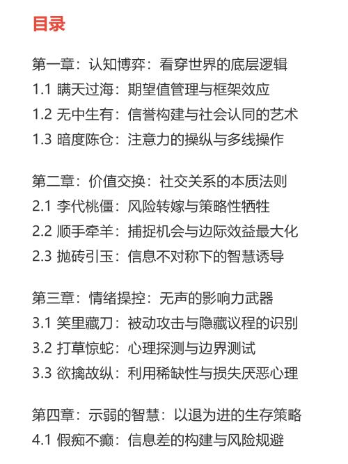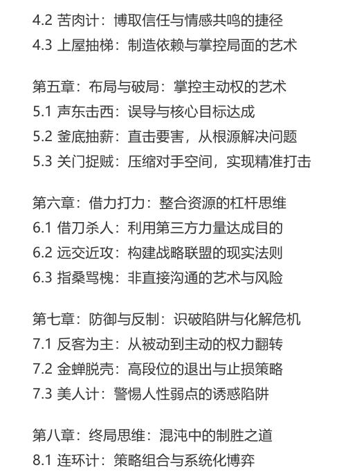 《人性真相36计》本书并非对古代兵法三十六计的简单复述,而是一部将其智慧内核应用于现代社会生存与人性博弈的深度解读手册。