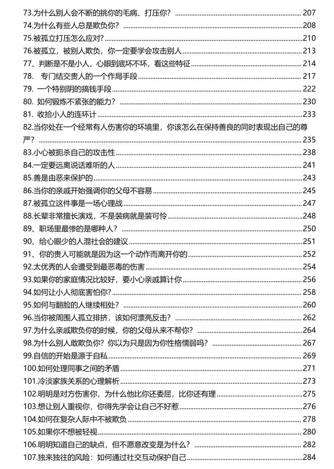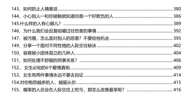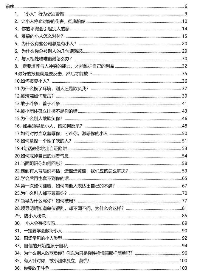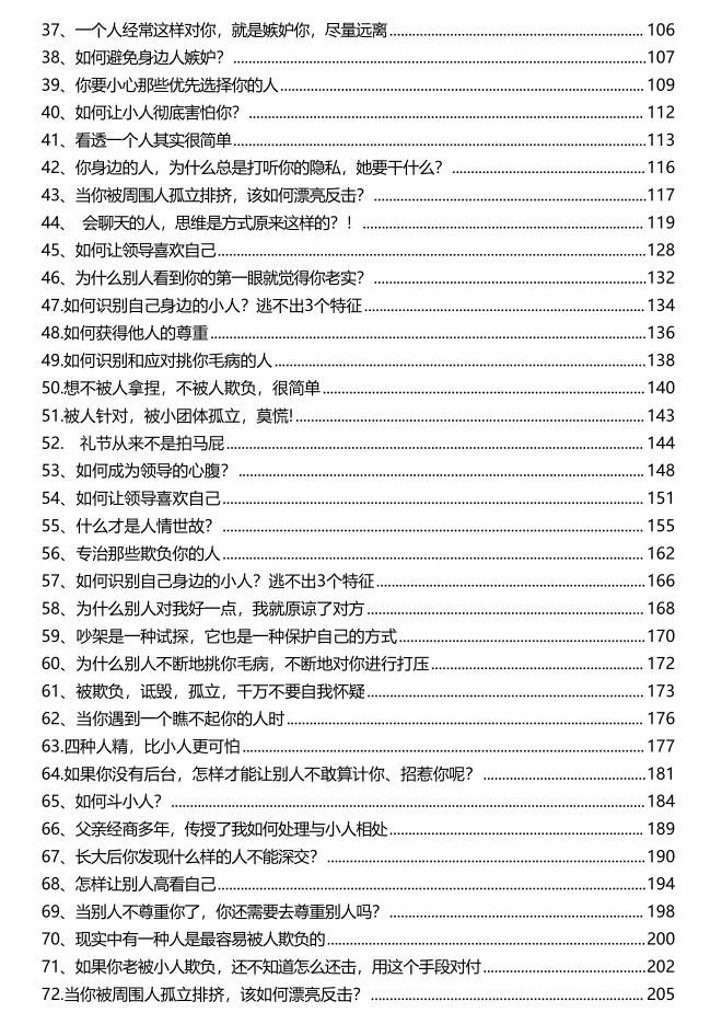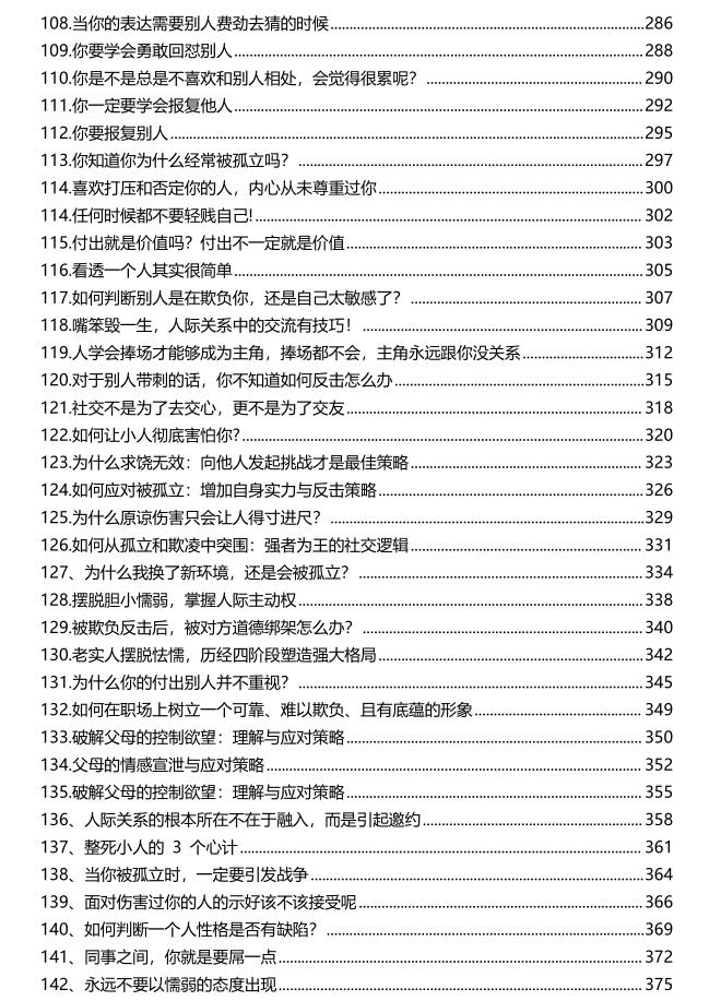 《人际关系剖析150篇》PDF 2025-10-13 人性权谋 人性认知的不足,有时就像在黑暗中摸索前行,容易让我们在不经意间受伤。 我们可能因为忽视了自身的弱点,或是未能理解他人的行为动机,而在人际关系或决策中遭遇挫折。 这种时候,我们可能会感到困惑和无助,就像是在迷雾中迷失了方向。 真正重要的是,我们要学会认识自己,了解人性的光明和阴暗面。 不要试探人性,了解人性、顺应他人人性达到自己目的。 资源下载下载价格10 爱坤币VIP免费升级VIP立即购买获取电子书 请添加微信:pc16616 获取电子书 请添加微信:pc16616 获取电子书 请添加微信:pc16616
