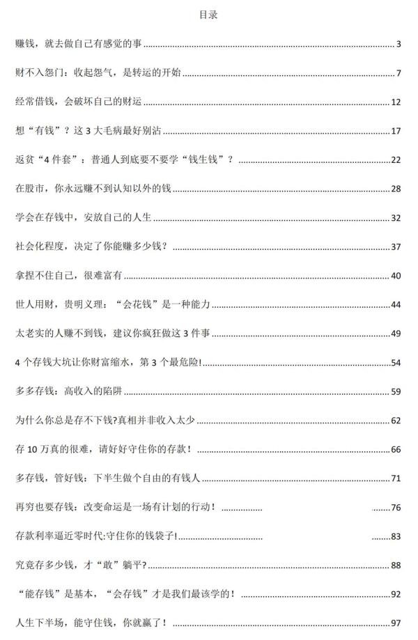 《财富防御术》PDF 2025-10-21 人性权谋 《财富防御术》赚钱的路有千万条,可最快出成果的那条,往往就藏着“舒服”。 比如说,有人天生对数字敏感,对着报表能坐一天,算错一个小数点比丢了钱还难受;有人爱跟人打交道,三言两语就能把陌生人聊成朋友,跑业务对他们来说不是任务,是享受。 有没有一件事,有没有一个领域,别人觉得枯燥,你却能从中找到乐趣?这些“没理由的喜欢”,或许就是你赚钱的利器。 做自己“一想起就不觉得累”的事,更容易成和久。 资源下载下载价格10 爱坤币VIP免费升级VIP立即购买获取电子书 请添加微信:pc16616 获取电子书 请添加微信:pc16616 获取电子书 请添加微信:pc16616