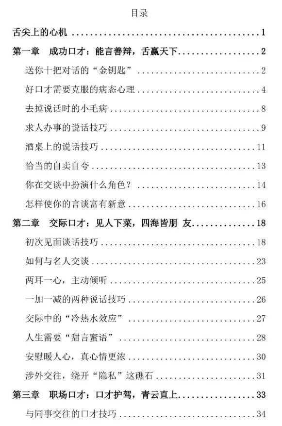 《说话心机学》PDF 2025-11-05 人性权谋 《说话心机学》——做人要先有心机,做事才会有手腕。 说话每个人都会,但真正会说话、说得好的人并不多。 它对一个人的情商,有着很高的要求,而所谓情商高,其实也就是会说话! 会说话的人,往往具备“心机”,是人聪明、情商又高的表现。 资源下载下载价格10 爱坤币VIP免费升级VIP立即购买获取电子书 请添加微信:pc16616 获取电子书 请添加微信:pc16616 获取电子书 请添加微信:pc16616