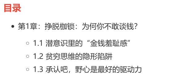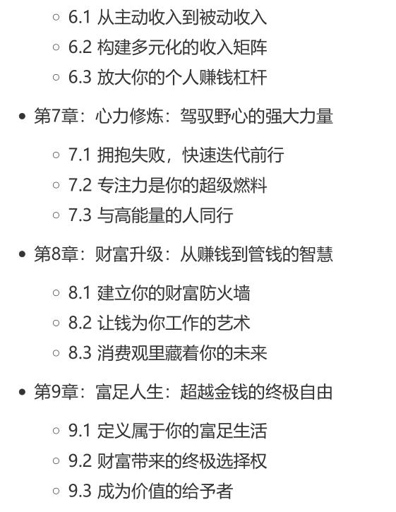 《觉醒吧赚钱的野心》PDF 2025-11-19 创业赚钱 《觉醒吧赚钱的野心》本书旨在唤醒每个人内心深处被压抑的财富渴望。 它深刻剖析了阻碍我们富有的思维定式与“金钱羞耻感”,强调正视并释放“赚钱的野心”是驱动个人价值实现的关键一步。 书中不仅系统性地重塑你的财富认知,揭示了创造财富的底层逻辑,更提供了一套将野心转化为可持续收入的行动框架。 这不只是一本关于赚钱的书,更是一次彻底的思维解放,引领你挣脱无形的枷锁,主动构建属于自己的富足人生。 资源下载下载价格10 爱坤币VIP免费升级VIP立即购买获取电子书 请添加微信:pc16616 获取电子书 请添加微信:pc16616 获取电子书 请添加微信:pc16616