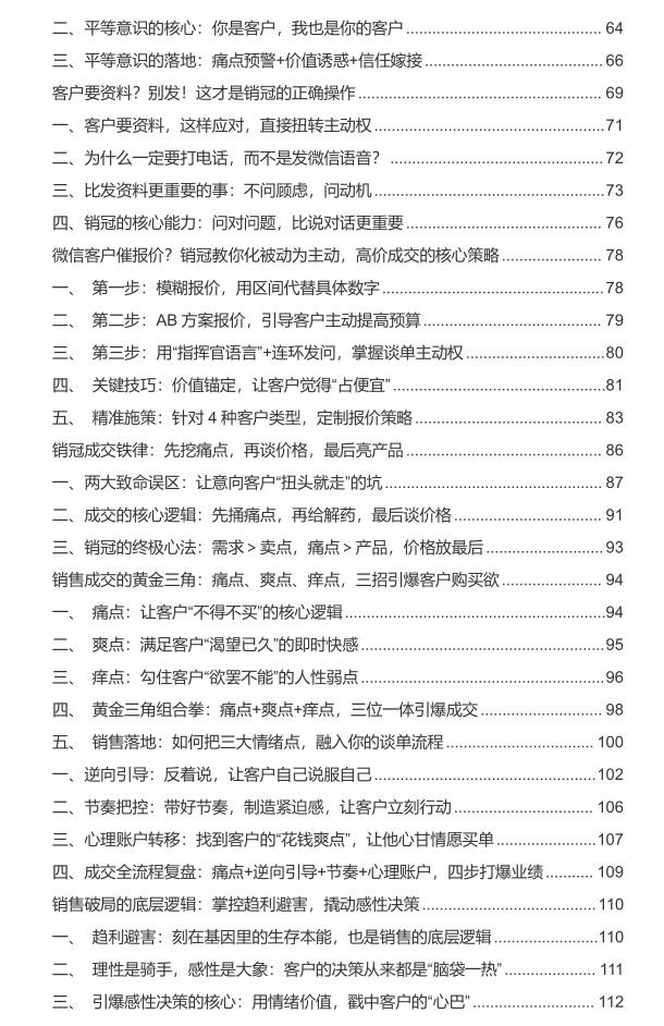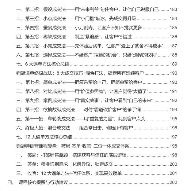 内含12大通单技巧、黄金三角痛点引爆法、FABE产品介绍法则等硬核干货,更首次公开“混合成交法”等销冠独家心法。