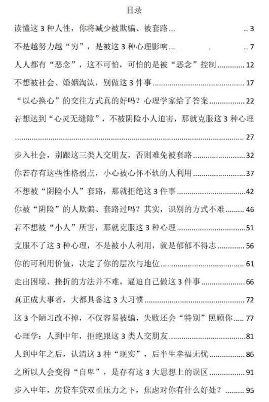 《拿捏人性》PDF 2026-01-11 人性权谋 《拿捏人性》以心理学为主体,附加方式和技巧,给朋友们做一些心理辅导。 帮助朋友们认知自我,认知人性,找到自己人生的方向; 不再被痛苦的人生折磨,不再被迷茫缠绕; 能够开启自己的潜力和能力,寻觅到属于自己的精彩、幸福人生。 资源下载下载价格10 爱坤币VIP免费升级VIP立即购买获取电子书 请添加微信:pc16616 获取电子书 请添加微信:pc16616 获取电子书 请添加微信:pc16616