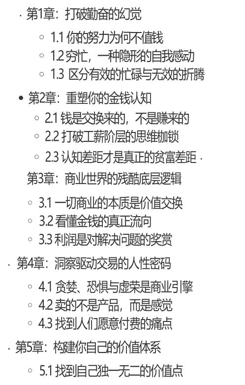 《勤奋幻觉与财富真相》PDF 2026-02-04 创业赚钱 《勤奋幻觉与财富真相》本书撕开了温情脉脉的面纱,直面财富创造的残酷真相。 它并非宣扬不劳而获,而是深刻揭示了商业世界的底层逻辑:单纯的勤奋在错误的赛道上可能毫无价值。 书中系统剖析了如何通过提升认知、洞察人性需求、构建有效的价值交换体系,来打破低水平勤奋的困局。 它将颠覆你对金钱的传统观念,为你提供一套清醒而实用的财富行动指南,让你看透商业本质,掌握真正有效的赚钱方法。 资源下载下载价格10 爱坤币VIP免费升级VIP立即购买获取电子书 请添加微信:pc16616 获取电子书 请添加微信:pc16616 获取电子书 请添加微信:pc16616