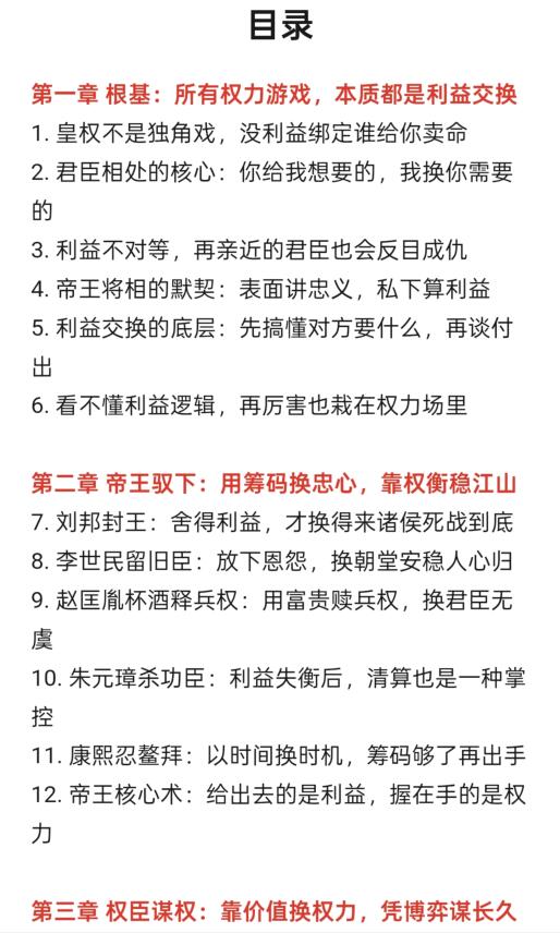 《龙椅下的交易》PDF 2026-02-17 人性权谋 《龙椅下的交易》解锁帝王将相的利益交换术 看透“所有关系都是利益互换”的真相,学会识别对方核心需求,告别“只谈感情不谈利益”的天真。 像帝王权臣一样权衡取舍,放下“不好意思谈利益”的软弱,收获“等价交换的稳固关系”,普通人也能掌握博弈主动权。 践行“积累筹码、精准交换”的准则,从被动吃亏到主动谋局,走向清醒掌控的人生。 为你揭开“利益交换才是生存底层逻辑”的权谋智慧 资源下载下载价格10 爱坤币VIP免费升级VIP立即购买获取电子书 请添加微信:pc16616 获取电子书 请添加微信:pc16616 获取电子书 请添加微信:pc16616