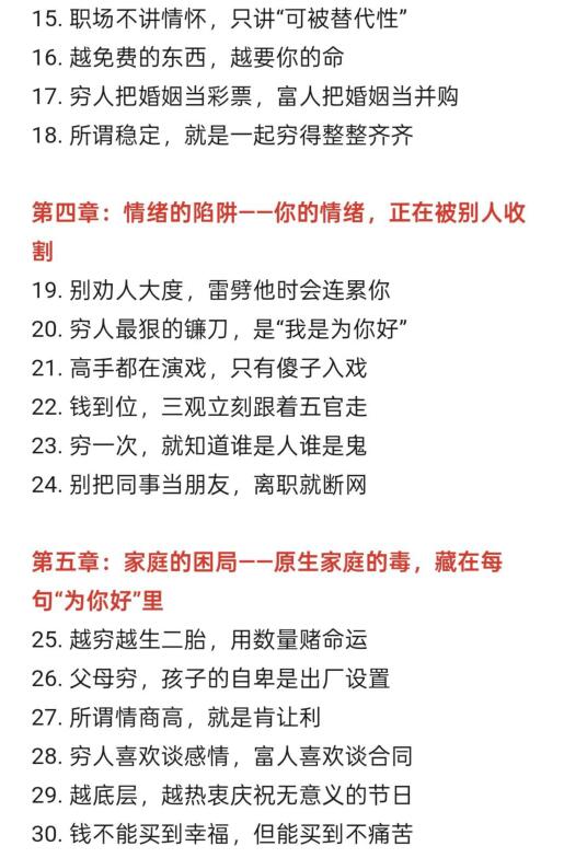 《贫富潜规则》PDF 2026-02-20 人性权谋 《贫富潜规则》这世上没有天生的穷人,只有被思维困住的人。 没有空泛的鸡汤,全是能落地的“破局指南”: 教你分清“面子消费”和“生存刚需”,再也不做“人情冤大头”; 带你拆解“越帮越忙”的无效社交,把精力砸在能变现的事上; 更有“利益谈判话术”,让你拒绝时不脸红,争取时不手软。 那些你曾纠结的“人情枷锁”“面子负担”,或许翻几页就能找到解开的钥匙。 资源下载下载价格10 爱坤币VIP免费升级VIP立即购买获取电子书 请添加微信:pc16616 获取电子书 请添加微信:pc16616 获取电子书 请添加微信:pc16616