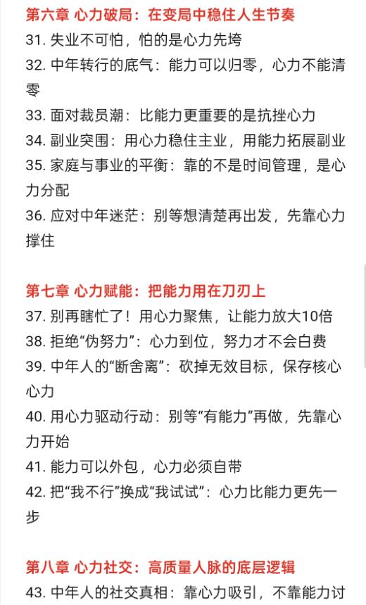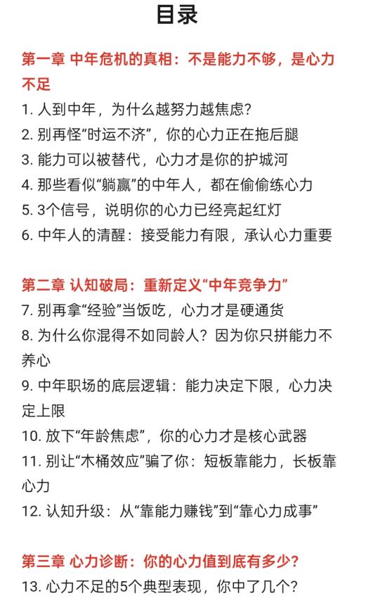 《心力觉醒》PDF 2026-02-27 人性权谋 《心力觉醒》中年以后,拼的是心力,不是能力。 人到中年越努力越焦虑?解锁下半场的核心竞争力。 是不是能力够却扛不住压力、想突围却总内耗、怕被替代而慌不择路? 为你揭开“中年以后拼心力而非能力”的生存智慧。 无论你正受困于职场危机、家庭压力、自我怀疑,这本书都能给你答案! 资源下载下载价格10 爱坤币VIP免费升级VIP立即购买获取电子书 请添加微信:pc16616 获取电子书 请添加微信:pc16616 获取电子书 请添加微信:pc16616