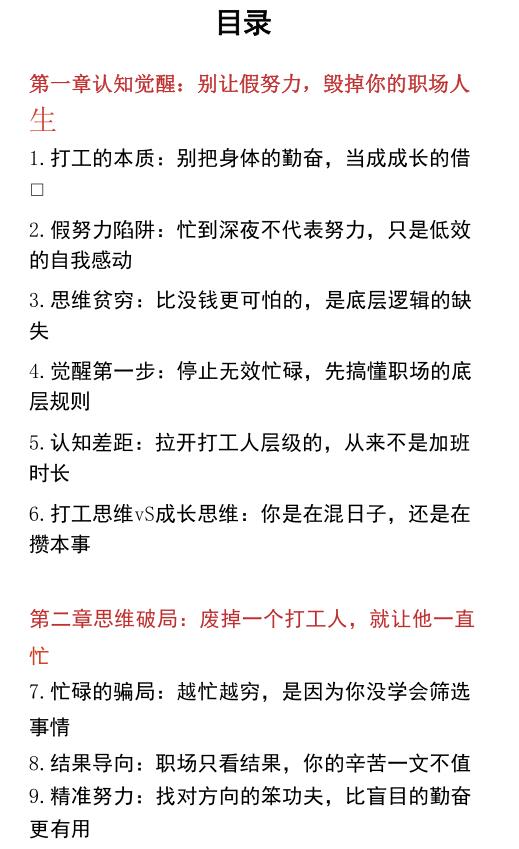 《觉醒吧打工人》PDF 2026-03-14 创业赚钱 《觉醒吧打工人》打工的本质:别把身体的勤奋,当成成长的借。 身体忙到飞起,思维原地踏步,这不是打工是瞎忙 稻盛和夫说:“工作的本质是提升自己,而不是单纯的谋生。” 很多人把打工过成了重复的机械运动,以为熬时间、拼体力就是努力。 却忘了职场的核心,从来都是用思维创造价值,而非用身体交换薪水。 你以为的勤奋,不过是逃避思考的借口,最终只会被职场慢慢淘汰。 资源下载下载价格10 爱坤币VIP免费升级VIP立即购买获取电子书 请添加微信:pc16616 获取电子书 请添加微信:pc16616 获取电子书 请添加微信:pc16616