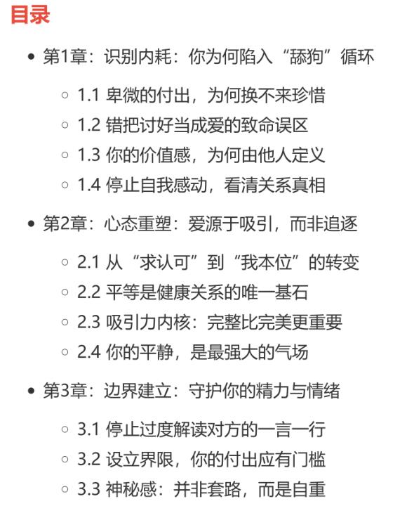书中通过大量真实案例揭示:单方面持续付出只会稀释你的吸引力,而适当的边界感与自我聚焦反而能产生神秘感与尊重。爱不是追来的,是相互吸引而来的。