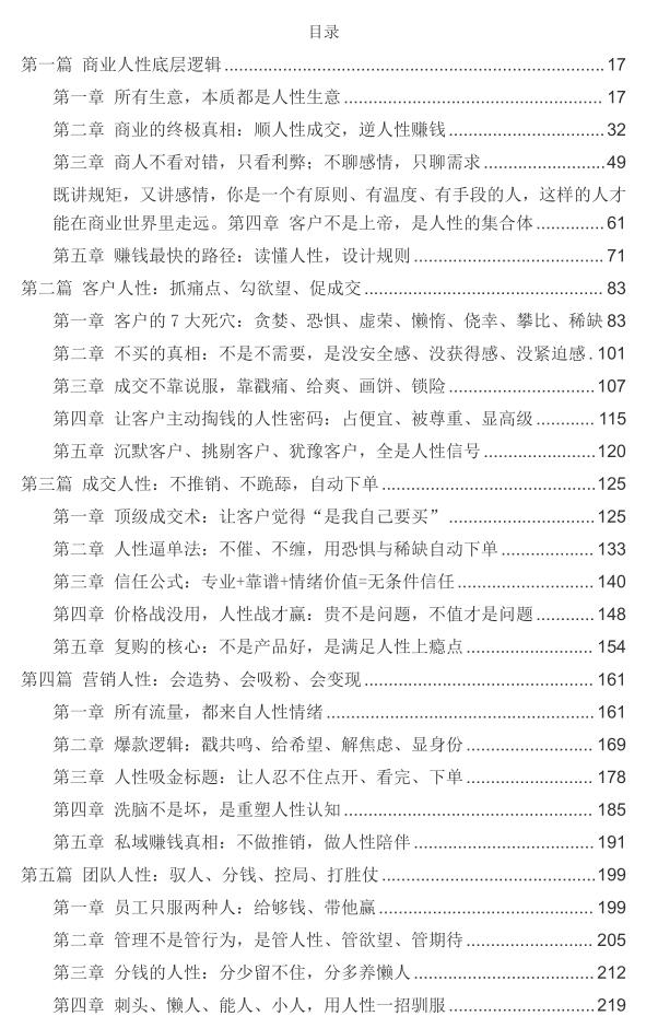 《商业人性赚钱超级秘籍》PDF 2026-04-11 创业赚钱 《商业人性赚钱超级秘籍》这本书直击商业核心,所有生意本质都是人性生意,不讲虚理,全是实战干货。 书中拆解贪婪、恐惧、虚荣等人性关键,教你顺人性成交、逆人性赚钱,从客户成交、营销吸粉,到团队管理、合作共赢、商业模式设计,覆盖商业全场景。 帮你跳出价格战,用人性逻辑设计自动成交系统,读懂人心、设计规则,轻松做长久生意,适合创业者、经营者与销售人群快速掌握赚钱心法。 资源下载下载价格10 爱坤币VIP免费升级VIP立即购买获取电子书 请添加微信:pc16616 获取电子书 请添加微信:pc16616 获取电子书 请添加微信:pc16616